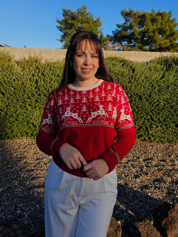 100% Cashmere Women's Nordic Reindeer Knit Sweater