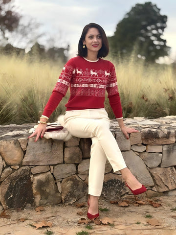 100% Cashmere Women's Nordic Reindeer Knit Sweater