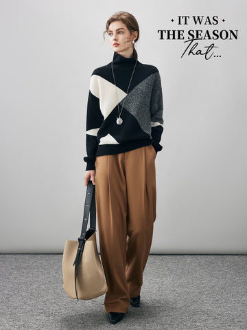 100% Cashmere Women's Mock Neck Fair Isle Cable Knit Sweater