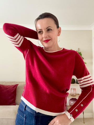 100% Wool Women's Ribbed Contrast Trim Sweater