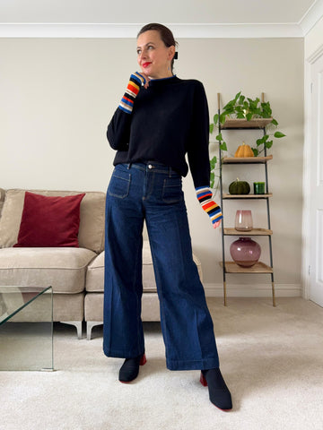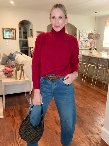 Love this sweater, pairs perfectly with a skirt and boots. The fit was true to size and I’m so glad that the cuffs don’t bunch like most sweaters seem to do.