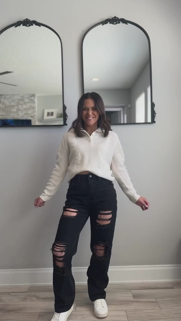 This Cable Knit Collared Sweater with Button Neck offers a stylish yet cozy look for the colder months. Designed with an elegant cable knit pattern, this sweater combines warmth with timeless style. The buttoned collar allows for versatile styling, keep it buttoned for a snug, polished look, or leave it open for a more relaxed vibe.