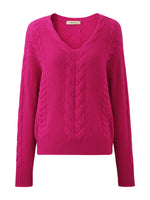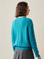 100% Cashmere Women's Cable Knit V-Neck Sweater