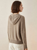 100% Cashmere Luxurious Cable Knit Hooded Cardigan