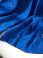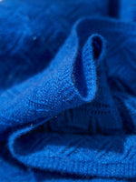 The intricate open-knit pattern adds a layer of visual interest and texture, creating a beautiful and elegant aesthetic that enhances the scarf's appeal.