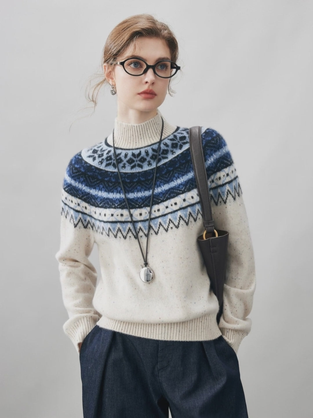 100% Cashmere Women's Fair Isle Mock Neck Sweater