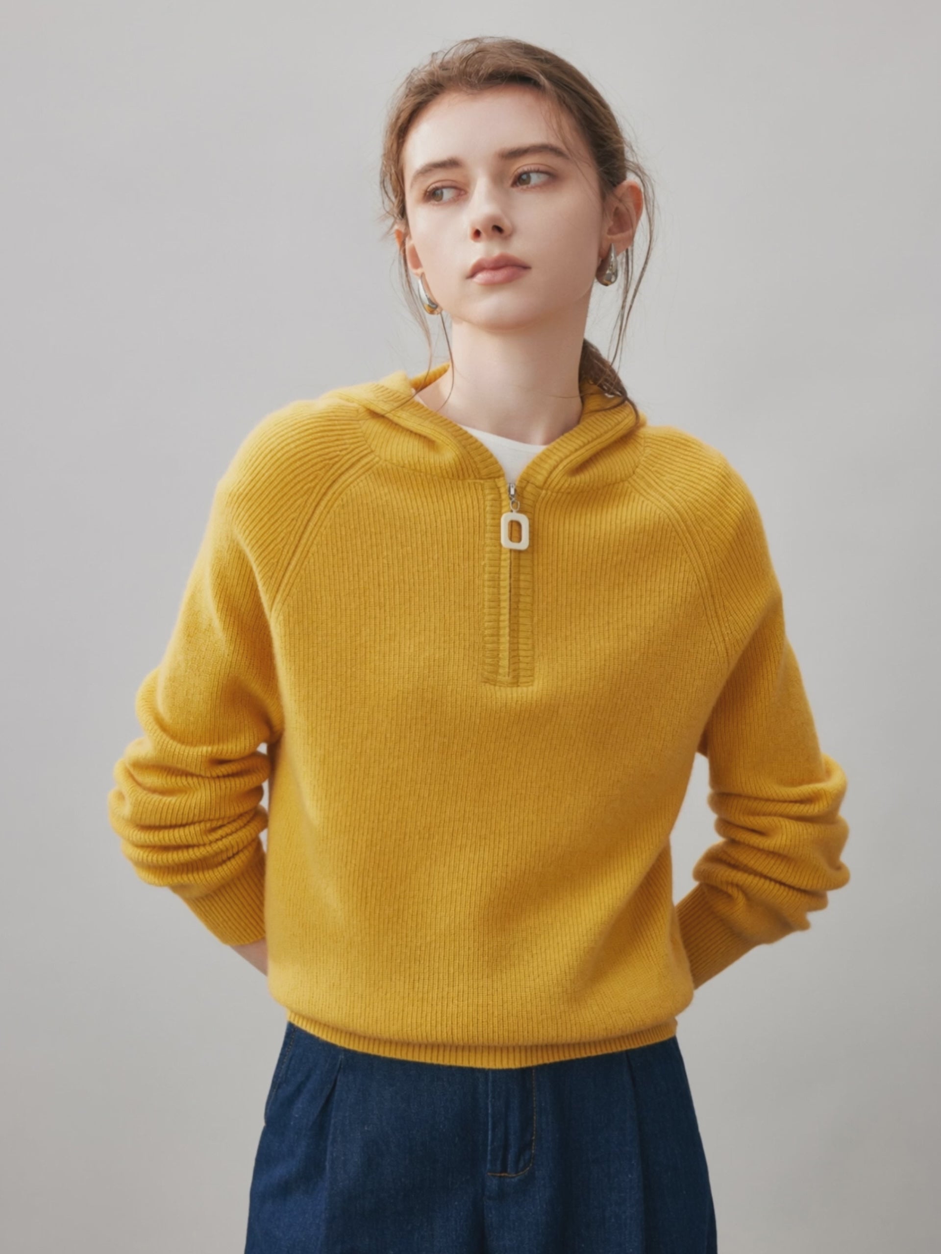 100% Cashmere Women's Ribbed Half Zip Knit Hoodie