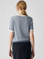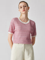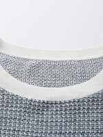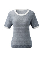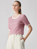 This chic striped knit t-shirt is designed to elevate your everyday style. With a soft, breathable knit fabric, this t-shirt features a unique striped design that seamlessly transitions from casual to semi-formal wear. The clean-cut silhouette is complemented by ribbed detailing at the edges, adding a sophisticated touch to your look.Â