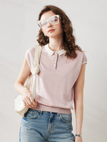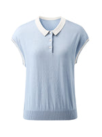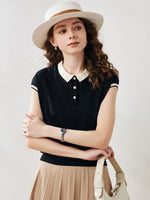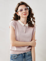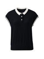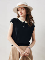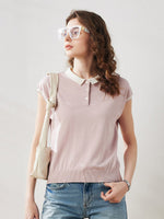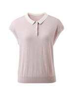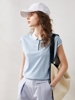 Women's Cotton Silk Ribbed Polo Neck Knit T-Shirt