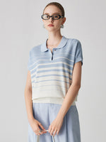 Women's Striped Polo Knit T-Shirt